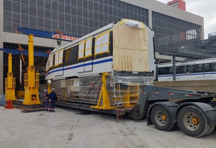 Vindo do Porto de Santos, o transporte do trem envolveu uma operação logística, realizada com oito carretas – cinco para os carros (vagões) e três para as estruturas de conexão. Essa mesma logística será adotada para o carregamento do quarto trem, que já está no porto do litoral paulista.