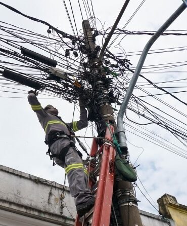 EDP faz trabalho de organização de fios, em Mogi das Cruzes